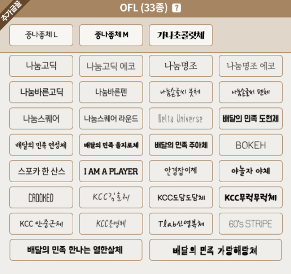OFL은 폰트 제작자가 저작권에 관한 모든 권리를 오픈한 것을 의미한다.