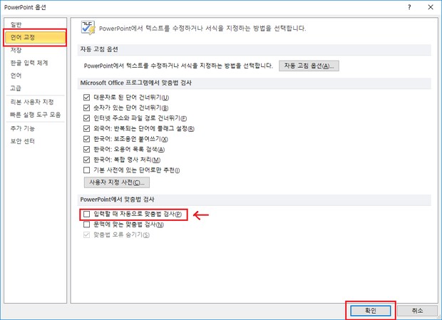 PowerPoint에서 맞춤범 검사 - 입력할 때 자동으로 맞춤법 검사