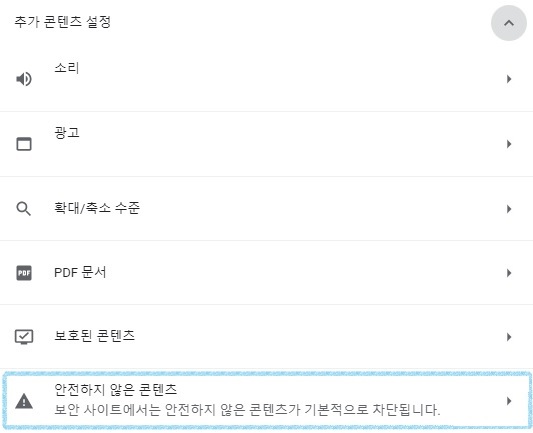 제일 아래 안전하지 않은 콘텐츠 클릭