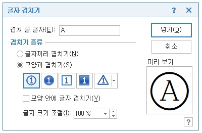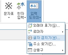 혹은 상단 메뉴 좌측 입력도우미 ▼ - 글자겹치기