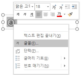 혹은 입력한 원형문자를 드래그 하여 범위지정하거나 원형문자 위에서 마우스 오른쪽 메뉴 - 글꼴