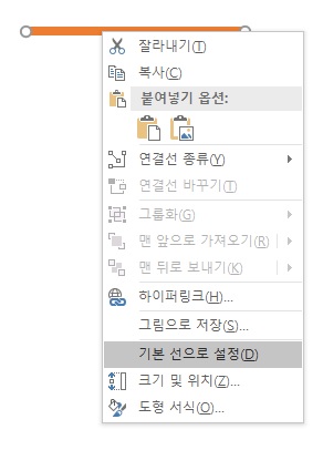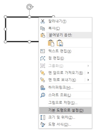 3. 변경한 도형위에서 마우스 오른쪽 메뉴 - 기본 도형으로 설정 을 선택합니다.