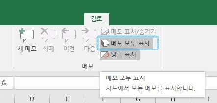 메모 모두 표시 할 때나 모두 숨길 때 모두 같은 메뉴 사용