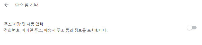 주소 저장 및 자동 입력 비 활성화