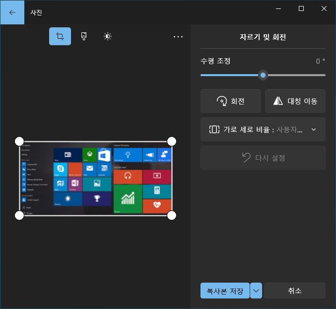 사진 앱 상단 메뉴 - 이미지 편집 (Ctrl+E)